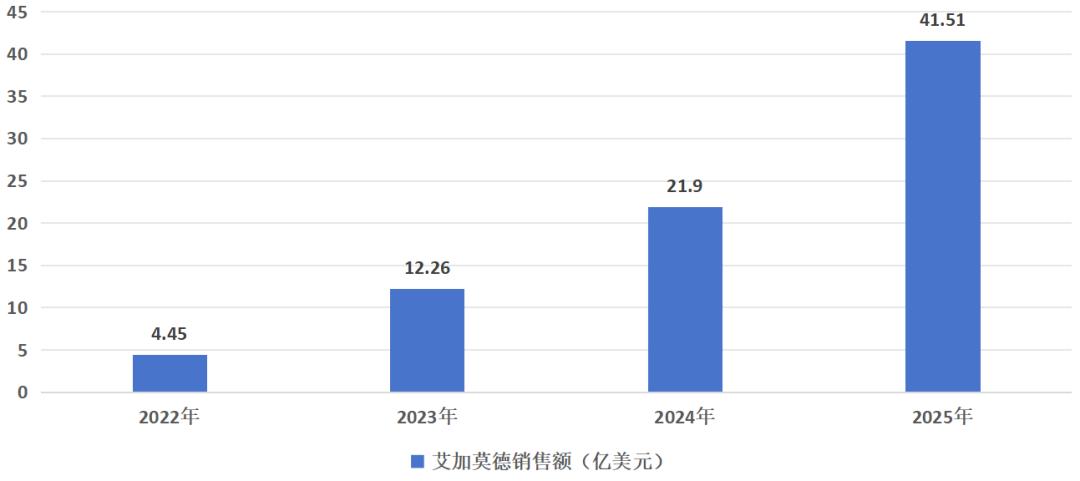 图:艾加莫德全球销售额,来源:锦缎研究院