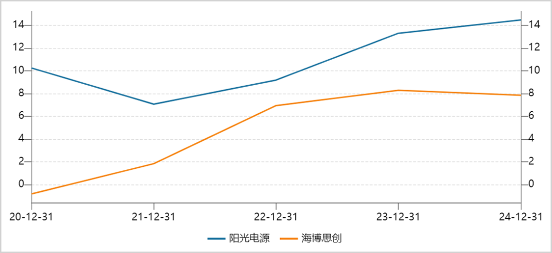 ▲阳光电源VS海博思创净利率走势图,来源:Wind