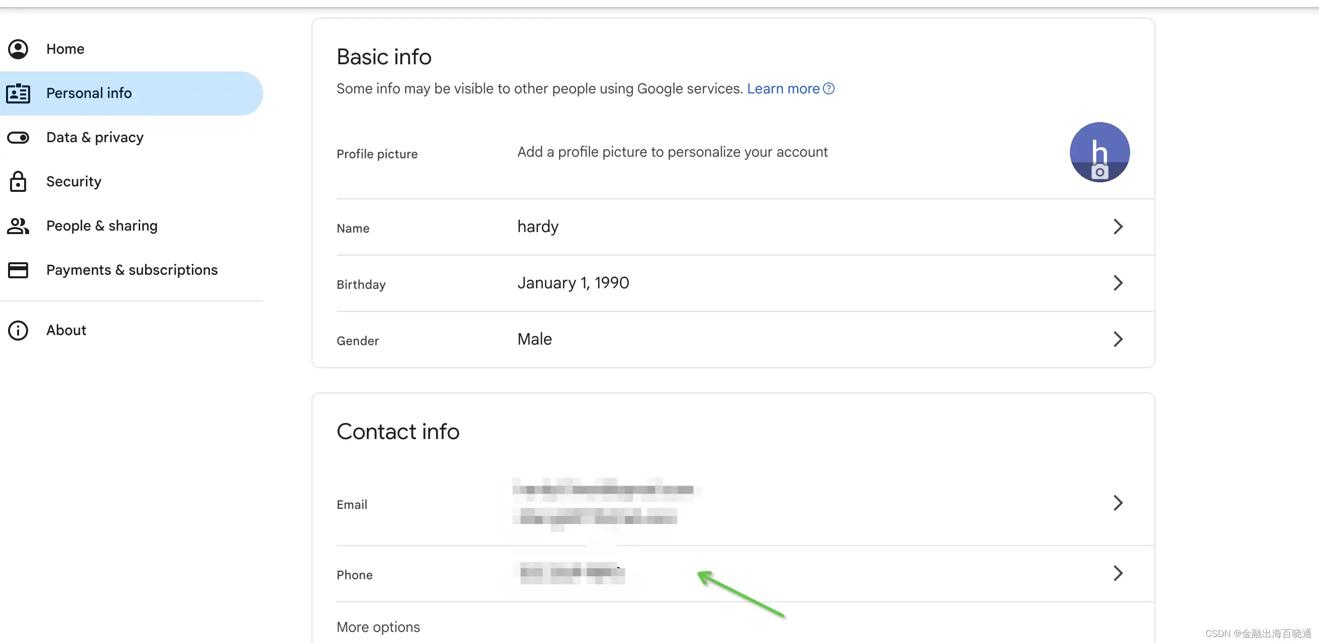 3. 到这里,Google账户还未真正注册完成,我们还需要到个人中心里进行备用邮箱以及手机号验证,如下图