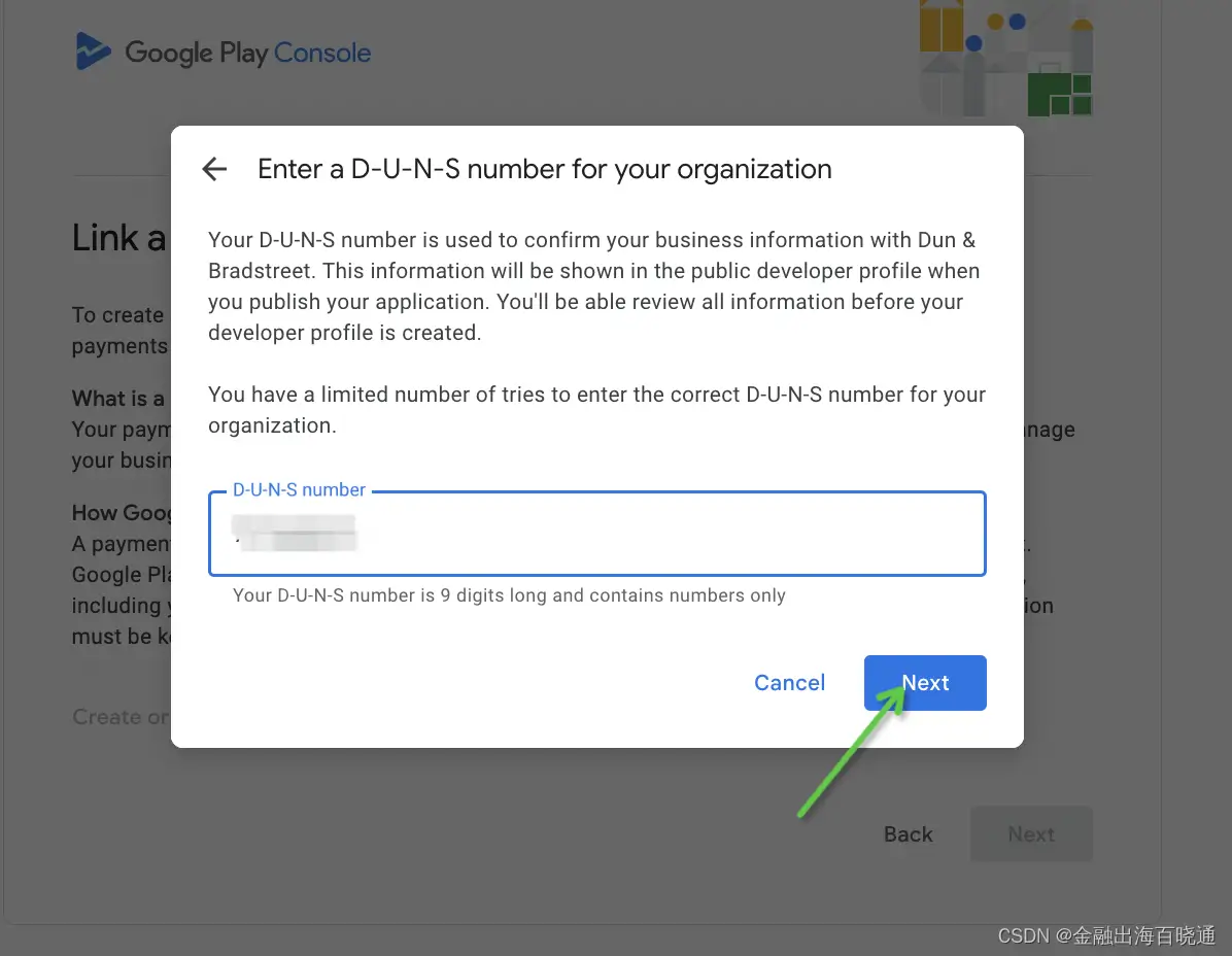 3. 接下来是输入开发者名称、创建付款资料(需要输入公司的邓白氏编码,所有信息都会通过Duns带出来自动填写)