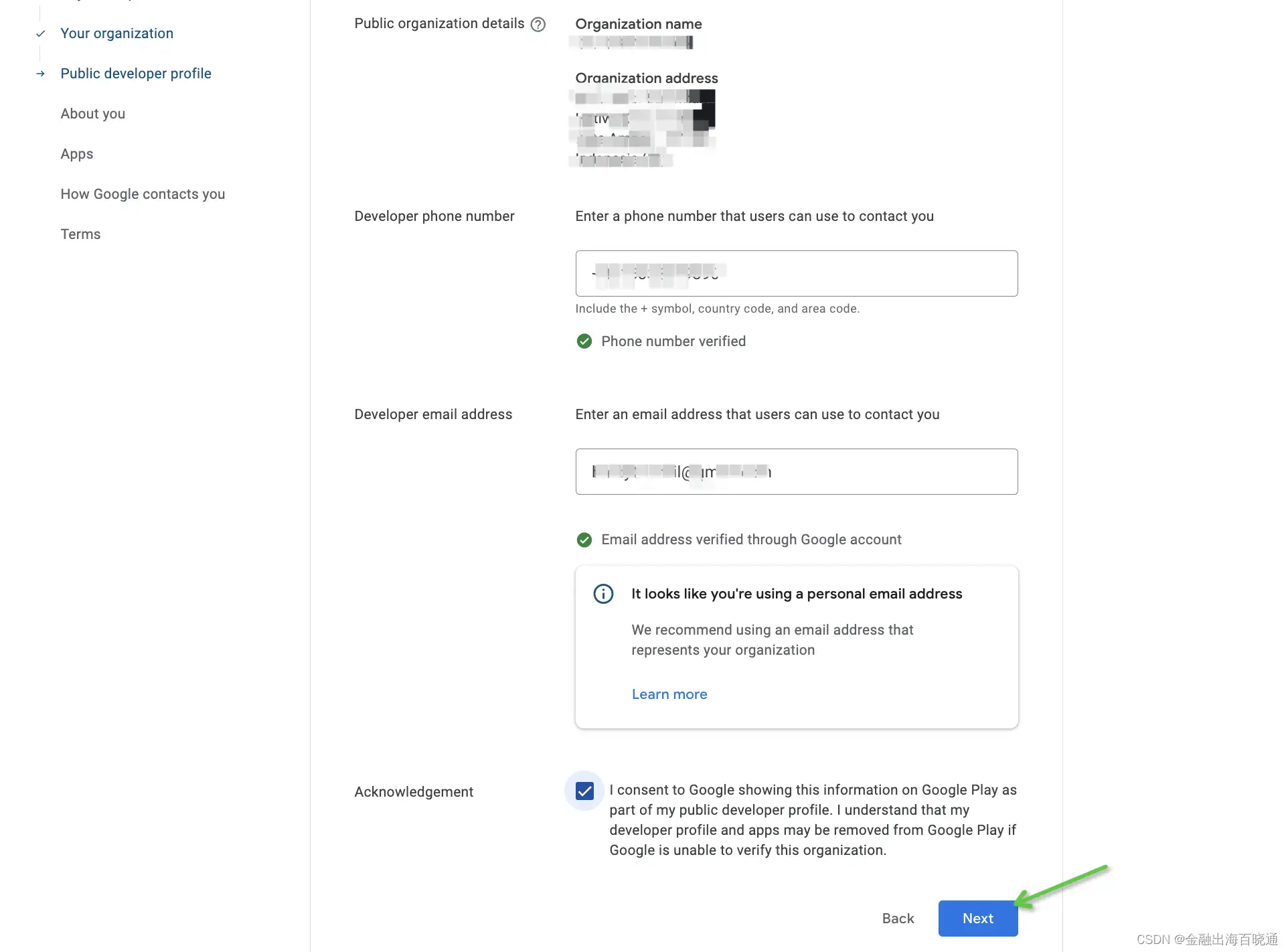 到此,注册Google Play开发者公司组织账户和个人开发者账户的流程就全部讲完了!Google开发者账户注册完成是我们出海之路的第一步,也是最重要的一步。出海之路,路远且艰。更多金融出海解决方案,欢迎关注我的博客并留言给我,大家一起探讨更多合规问题,稳健航行世界之海。