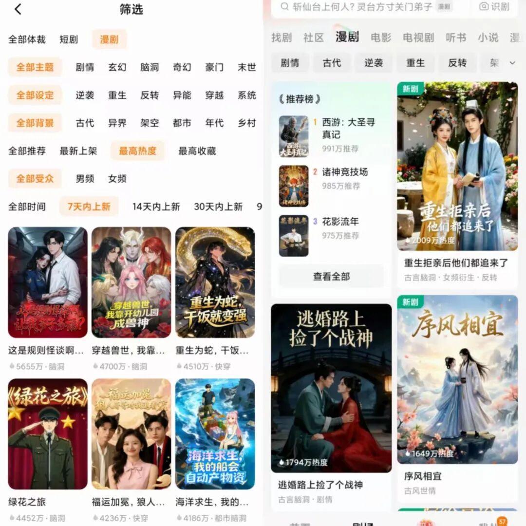 目前,AI漫剧可以分为2D/3D漫剧(传统定义的动态漫)AI仿真人漫剧、沙雕漫。红果爆款漫剧,大多是2D/3D漫剧和沙雕漫。