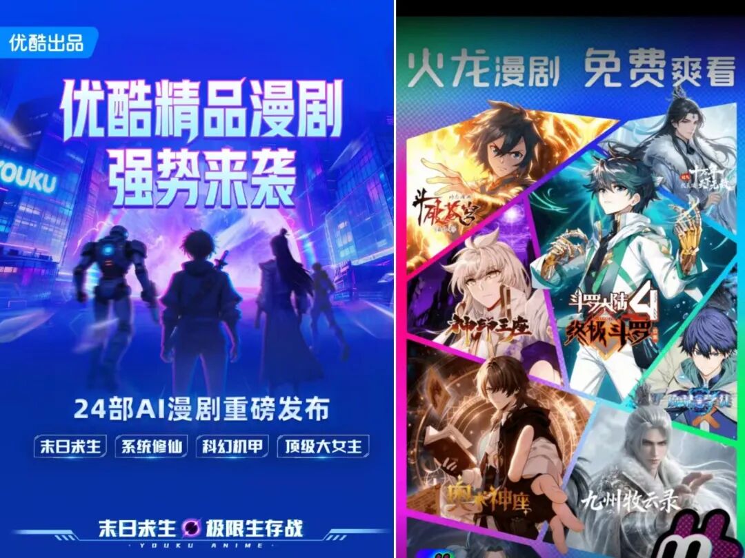 察觉热浪汹涌,开年后,长视频平台跑步入场。1月20日,爱奇艺升级漫剧分账新规,独家分账比例最高可至100%;2月4日,优酷和腾讯同时向外界发布了利好政策:优酷推出漫剧频道和“酷漫计划”,在原本分账基础上,单节目额外最高可得100万元激励;腾讯上线独立漫剧APP“火龙漫剧”,豪掷2320万元向中文在线采购漫剧内容。